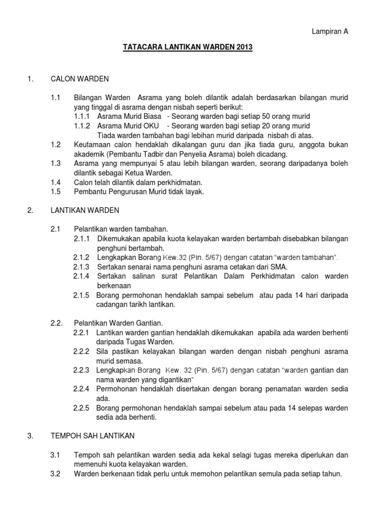 Pelaksanaan Peluasan Pelantikan Warden Asrama Kepada Semua Kakitangan Bukan Guru Gred 19 Dan Ke Atas Di Sekolah Sekolah Di Bawah Kementerian Pendidikan Malaysia Kpm Sektorspm Membalik Pdf Dalam Talian Fliphtml5