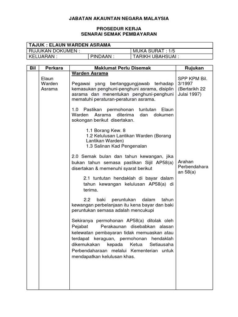 Bayaran Lain Lain Insentif Pendidikan Elaun Warden Asrama Pdf Jabatan Akauntan Negara Malaysia Prosedur Kerja Senarai Semak Pembayaran Tajuk Elaun Course Hero
